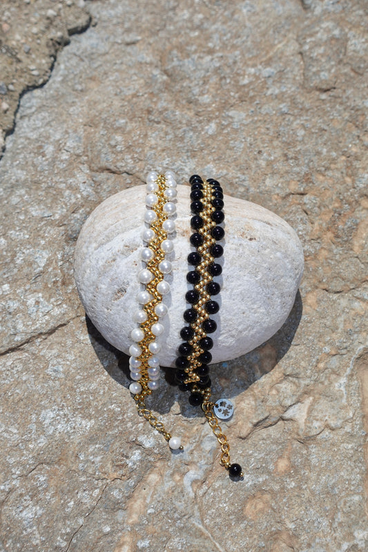 Starry Hematite and Pearl Bracelets