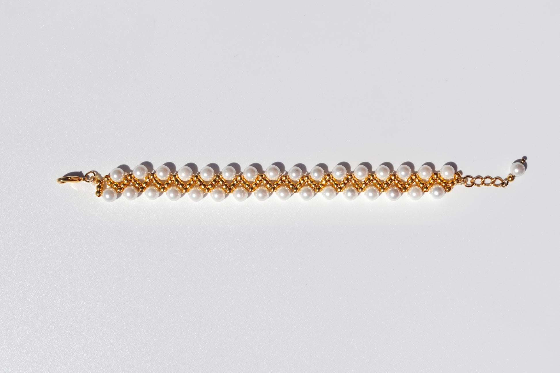 Intricately beaded with a flowing zig-zag design, this bracelet offers a delicate balance of structure and softness. Its elegant pattern catches the light with every movement, making it a standout piece whether worn solo or stacked. Available in a range of color variations to suit every style, it’s a refined classic with a modern edge. Crafted 100% by hand.